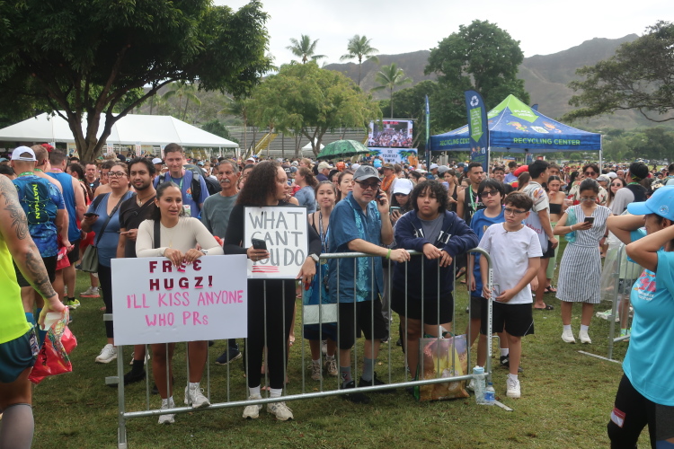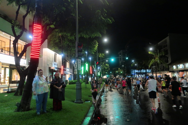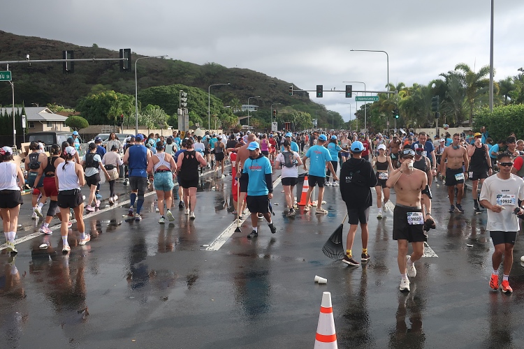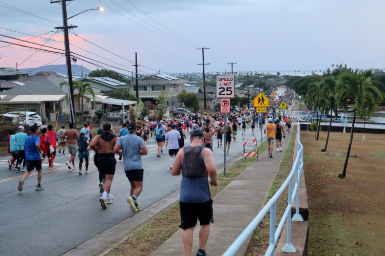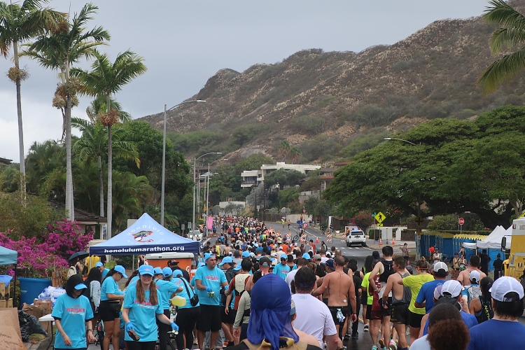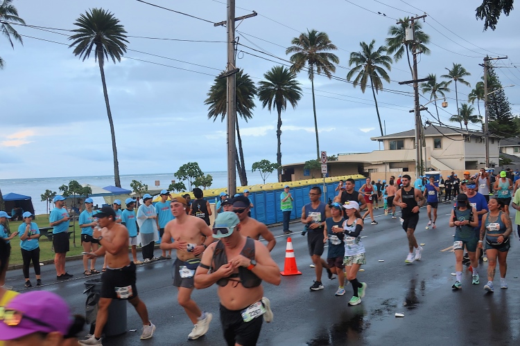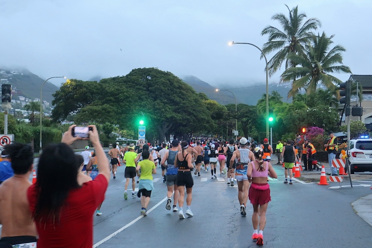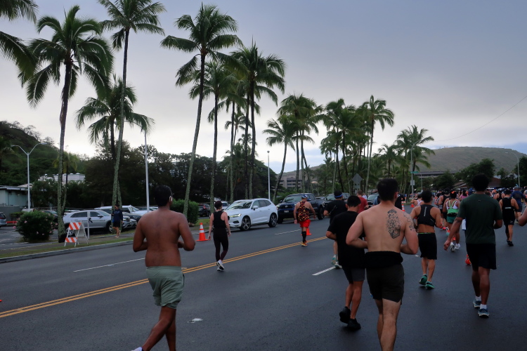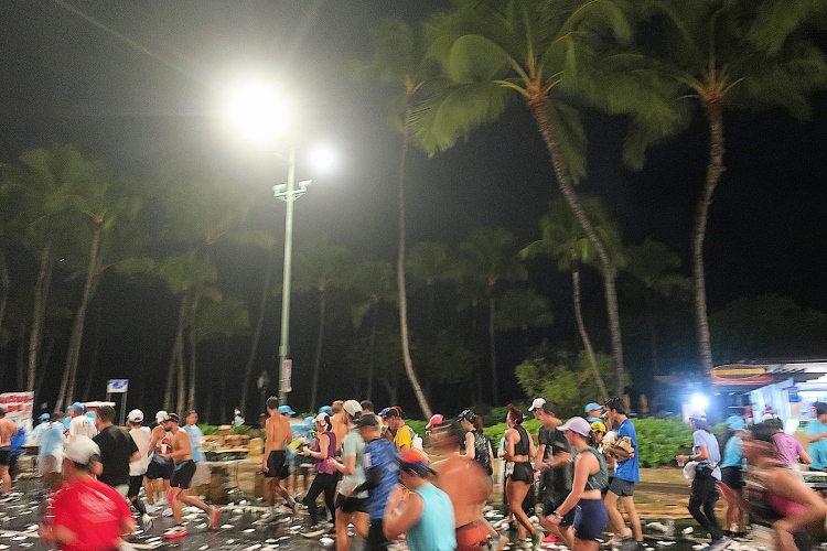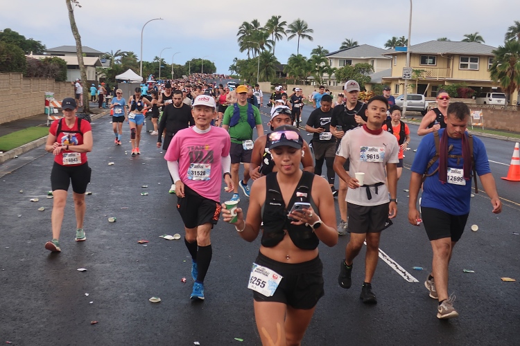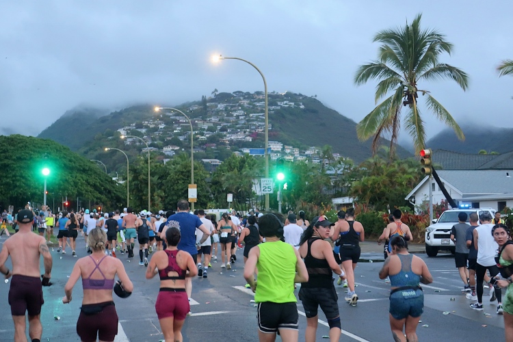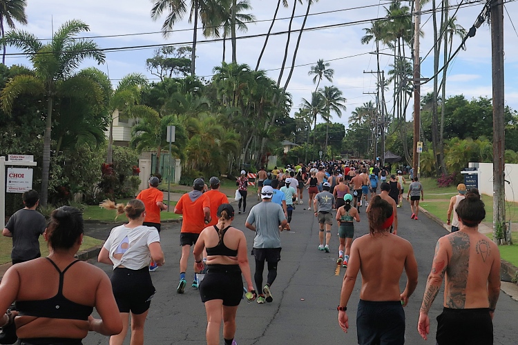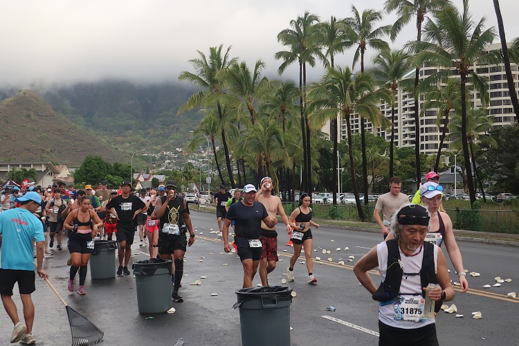 Die Schleife durch Hawaii Kai ist aber auch aus anderen Gründen besonders motivierend. Denn die Bewohner stehen hier zuhauf an der Strecke, feiern das Laufevent als Party und verwöhnen die Läufer mit allerlei süßen Leckereien - eine sehr willkommene Abwechslung in der sonst so diätetischen Läuferversorgung. Selbst Kältesprays für die überreizte Beinmuskulatur werden bereitgehalten.