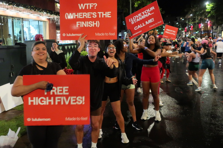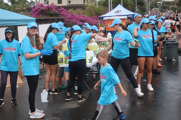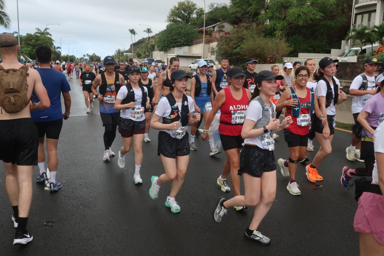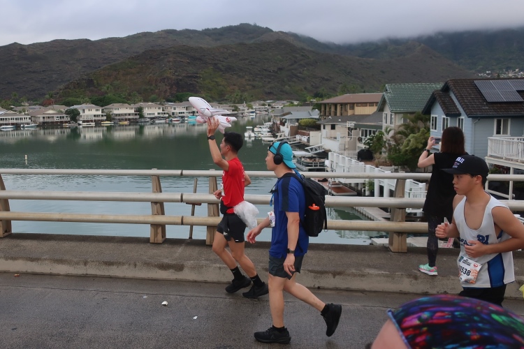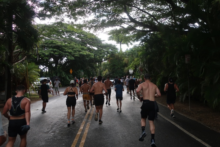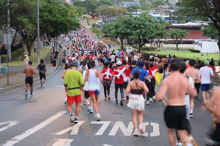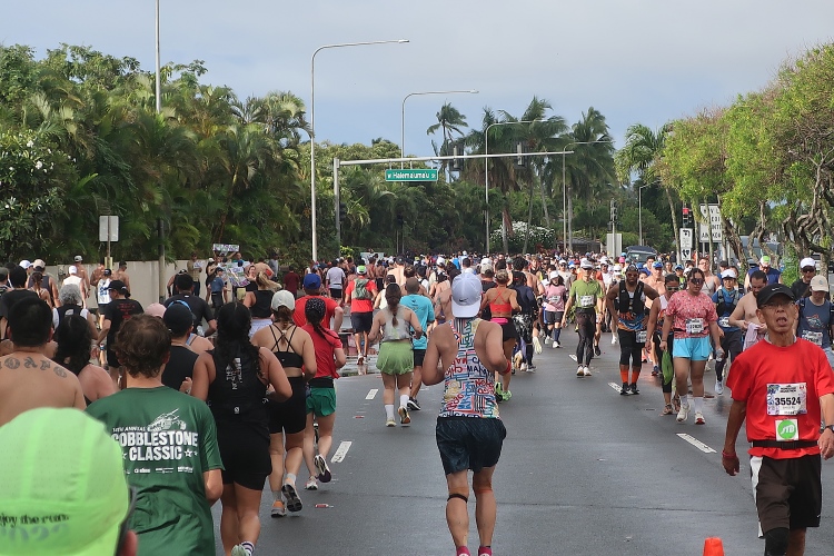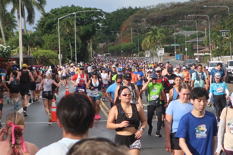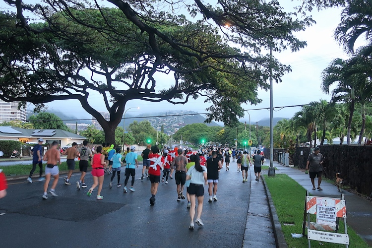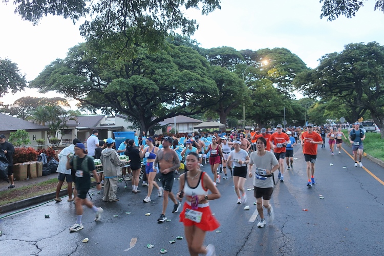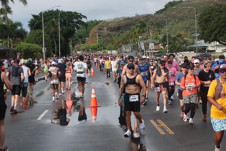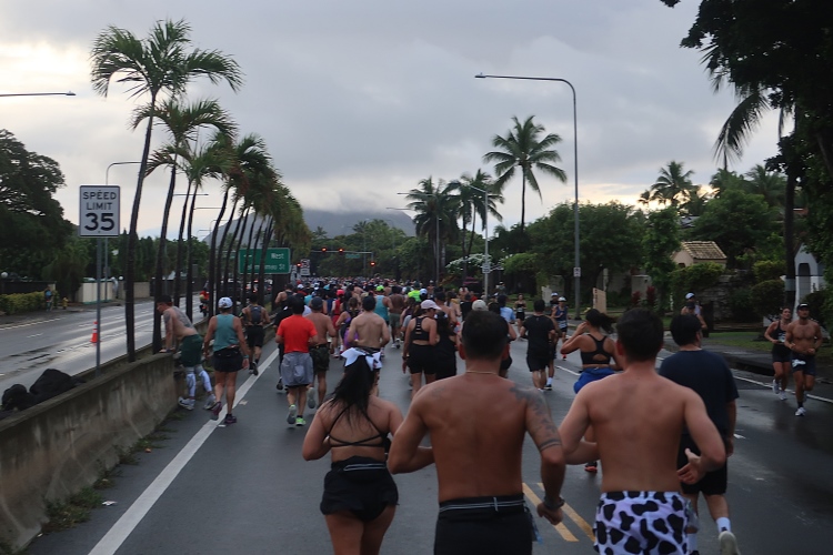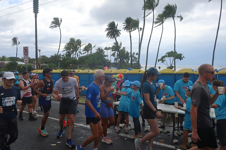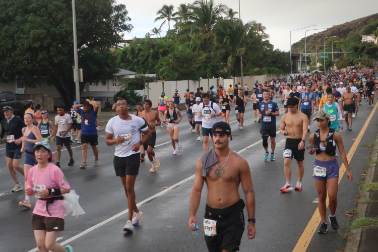 Die Schleife durch Hawaii Kai ist aber auch aus anderen Gründen besonders motivierend. Denn die Bewohner stehen hier zuhauf an der Strecke, feiern das Laufevent als Party und verwöhnen die Läufer mit allerlei süßen Leckereien - eine sehr willkommene Abwechslung in der sonst so diätetischen Läuferversorgung. Selbst Kältesprays für die überreizte Beinmuskulatur werden bereitgehalten.