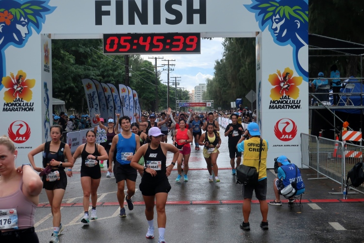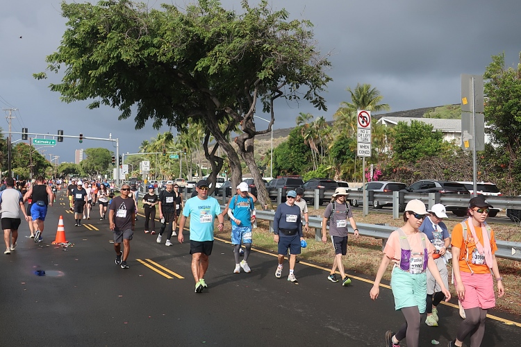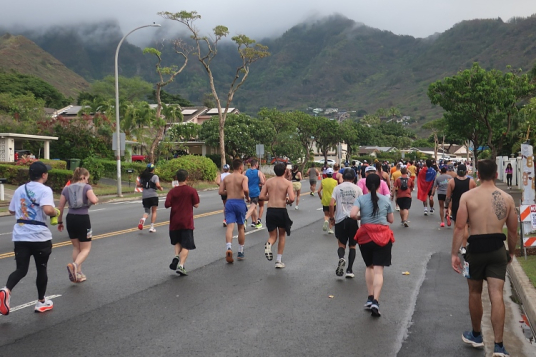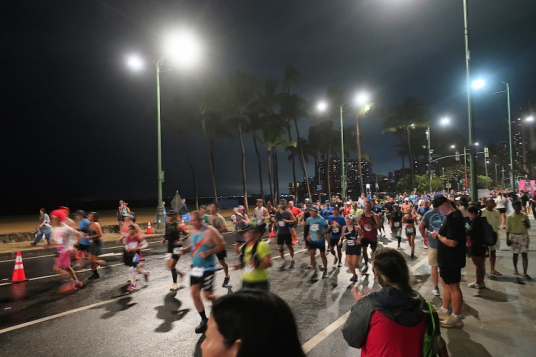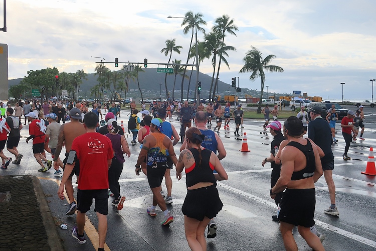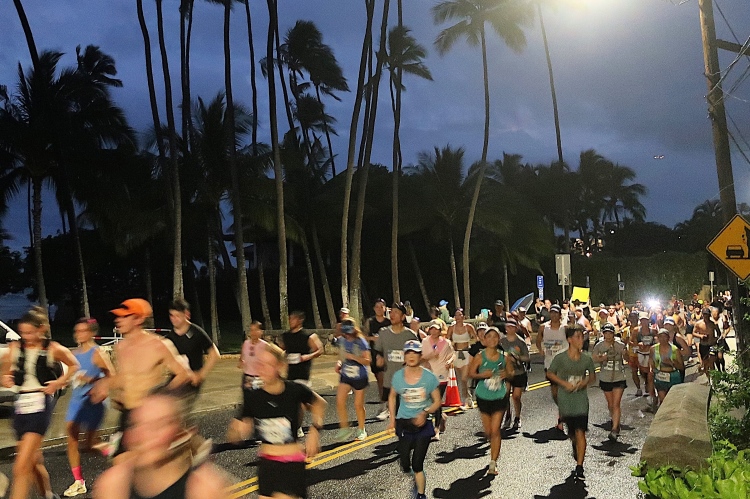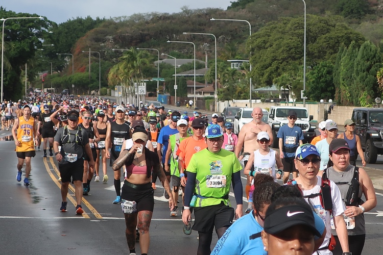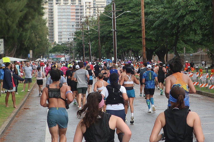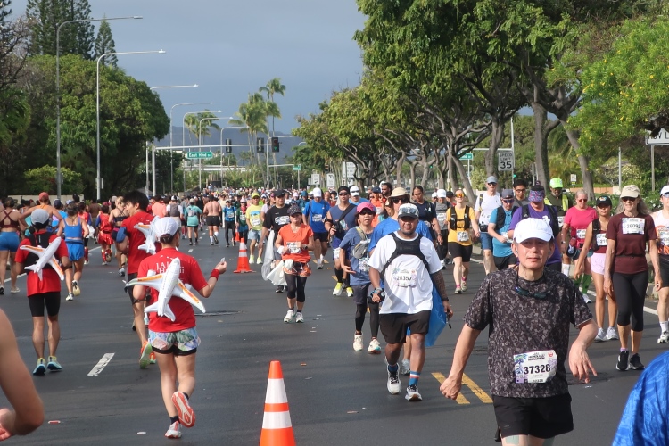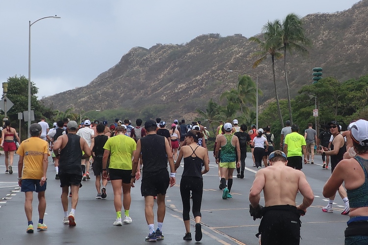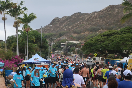 In einer auf Optimierung und Bestzeitenjagd getrimmten Marathonwelt nimmt sich der Honolulu-Marathon wie ein Anachronismus aus. Es ist der „Aloha Spirit“, den hier jeder spüren soll und der den Geist dieses Laufs bestimmt. Und das bedeutet: Kein Zeitlimit, kein Teilnehmerlimit, keine Qualifikationszeiten. Jeder, der nur lang genug krabbeln kann, ist willkommen. Laufen ist kein Muss. Und so kommt es, dass nach den ersten sechs Stunden regelmäßig erst die Hälfte der Teilnehmer das Ziel erreicht hat. Und der letzte etwa nach 14 Stunden eintrudelt.