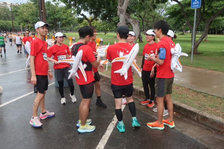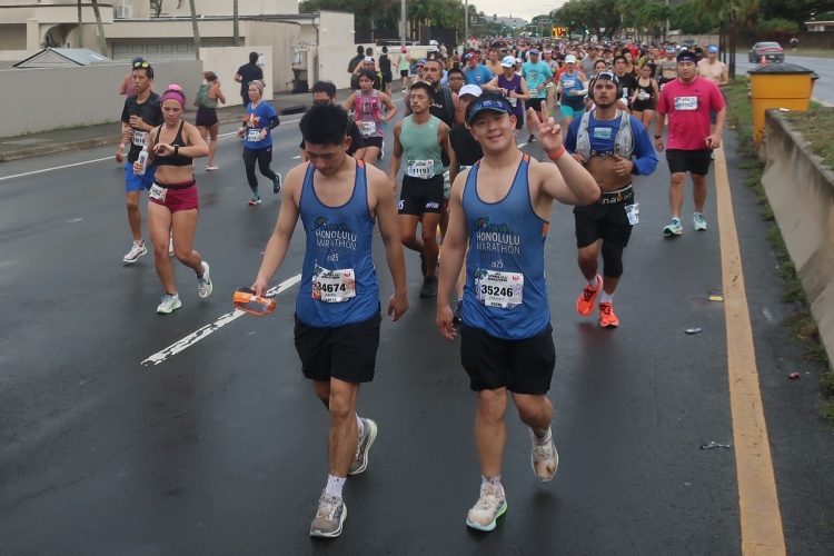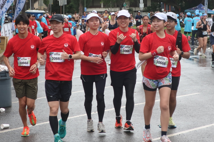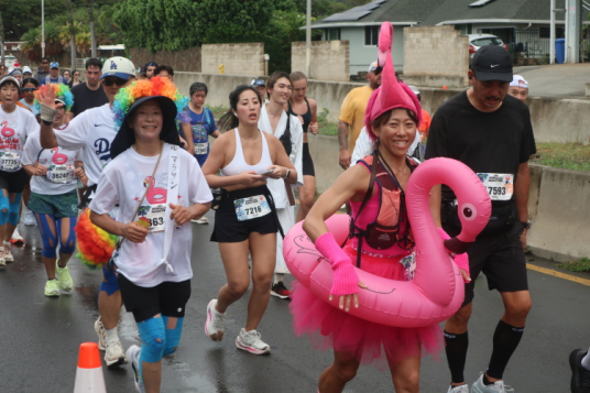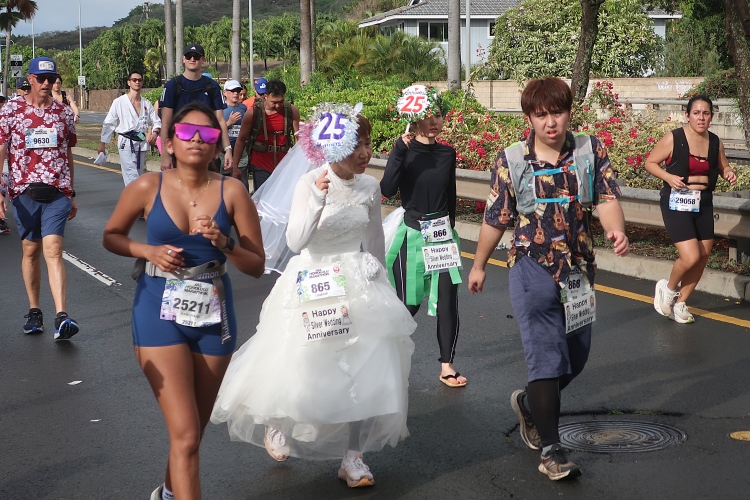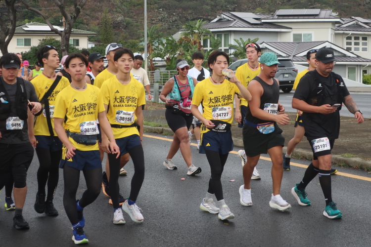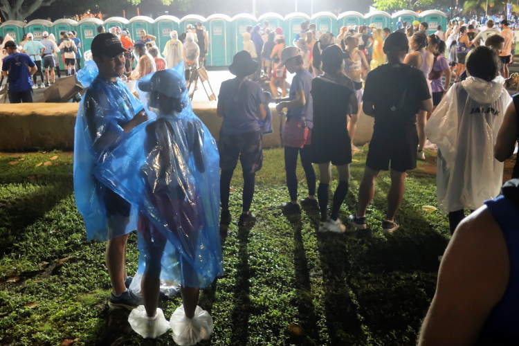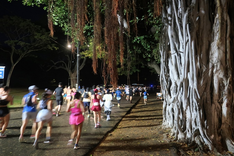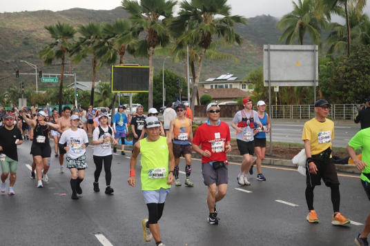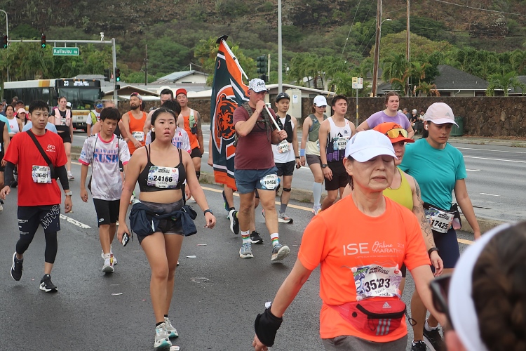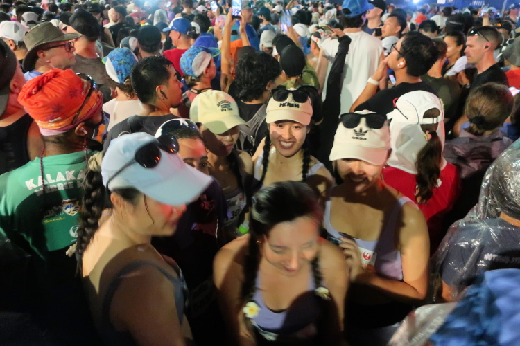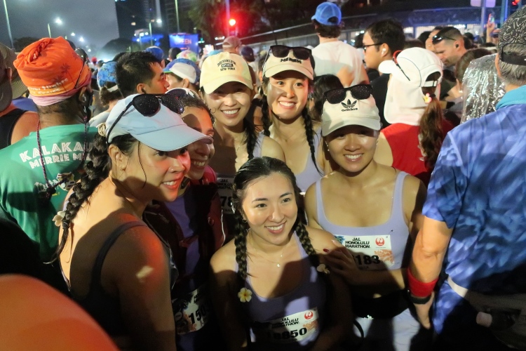 Augenfällig ist bereits hier eine weitere Besonderheit des Honolulu-Marathons: Horden bestens gelaunter Japaner dominieren zumindest akustisch das Teilnehmerfeld und machen den Honolulu Marathon nicht nur zu einem der größten US-amerikanischen, sondern auch japanischen Marathons. Einige sind kostümiert und zeigen auch damit, dass der Fun und nicht die Zeit für sie im Vordergrund steht.