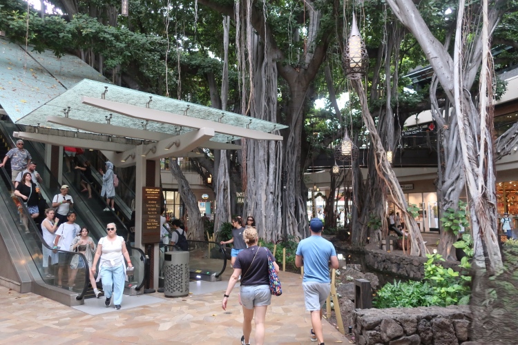 Nach sechs Kilometern sind wir fast wieder dort, wo wir gestartet sind: Auf dem Ala Moana Boulevard. Nur laufen wir jetzt in der Gegenrichtung am Ala Moana Center, laut Eigenwerbung weltweit größtes Open Air Shopping Center mit mehr als 350 Geschäften und Restaurants, vorbei.