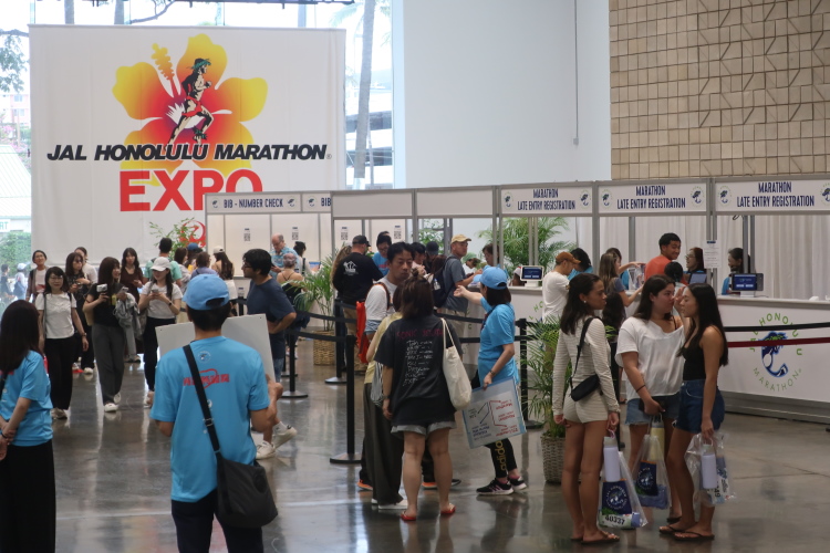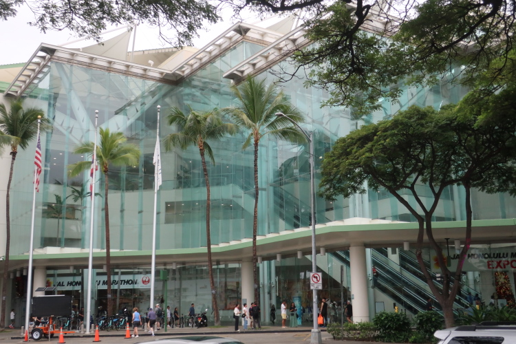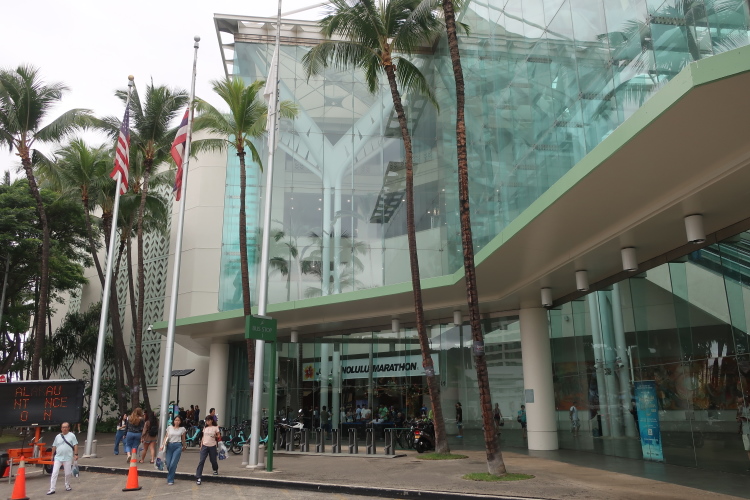 Erster Anlaufpunkt im marathonischen Vorprogramm ist das Hawaii Convention Center in der Kalakaua Avenue nordwestlich von Waikiki. Modern, luftig und chic präsentiert sich das im Entrée mit reichlich Glas konzipierte Convention Center. An den drei Tagen vor dem Lauf kann man dort seine Startnummer holen.