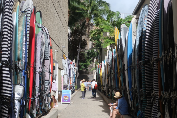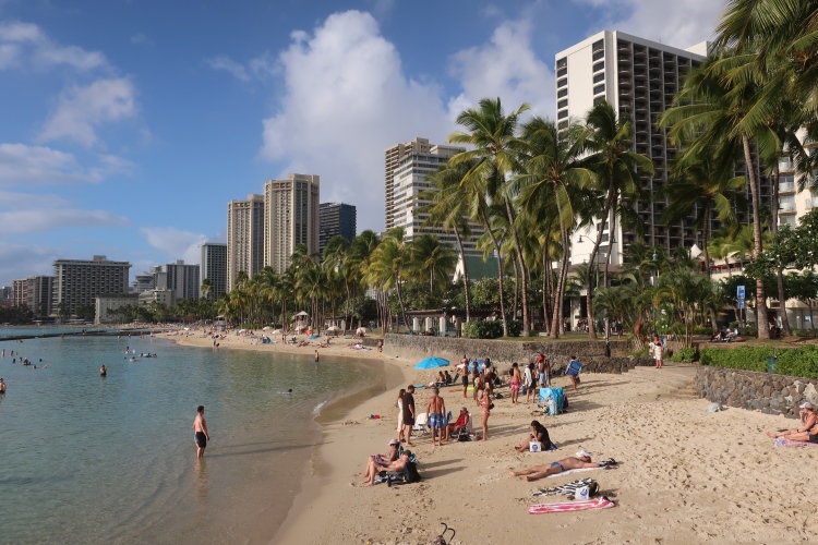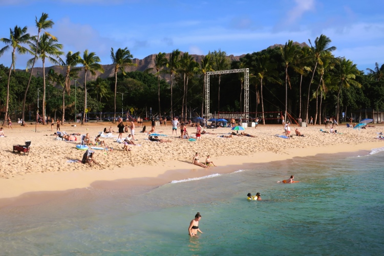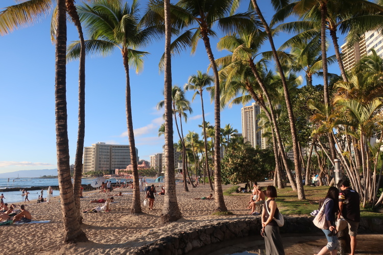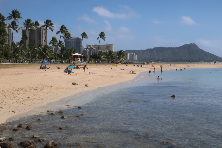 Gedanklich untrennbar mit Honolulu verbunden ist Waikiki: der Stadtteil mit einem der berühmtesten Strände der Welt, der touristische Hotspot Hawaiis und pulsierende Nabel der Stadt. „Waīkīki“, wie es korrekt geschrieben wird, steht in der Sprache der Ureinwohner für „sprudelndes Frischwasser“ und erinnert an die Quellen und Flüsse, die die Feuchtgebiete speisten, die Waikiki einst vom Landesinneren trennten. Im 19. Jahrhundert war Waikiki Rückzugsort der königlichen Familie Hawaiis, ehe es sich zur touristischen Hochburg von heute fortentwickelte.