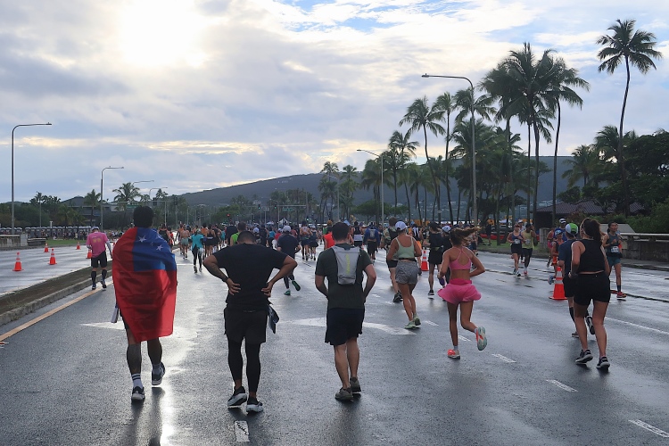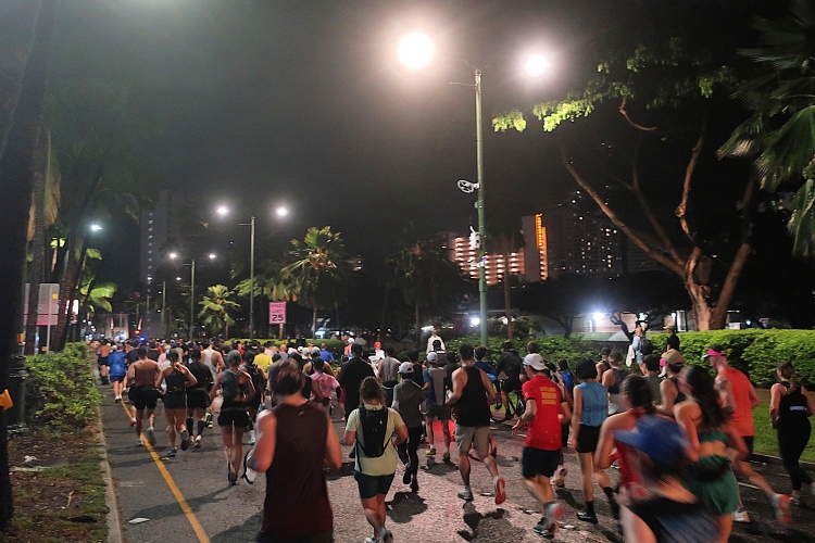 Man muss - nicht nur sprichwörtlich - um die halbe Welt reisen, elf Stunden Zeitumstellung bewältigen, tropische Hitze und bisweilen auch monsunartigen Regen ertragen, Menschenmassen erdulden und dafür auch noch viel Geld zahlen – und das, nur um sich 42,2 km über den Asphalt zu quälen. Das klingt nach einem eeecht schlechten „Deal“. Bringt man dies jedoch in Verbindung mit den Zauberworten „Hawaii, Honolulu, Waikiki“, verleiht dies all den Erschwernissen auf einmal so etwas wie Glanz. Für so ein Traumziel nimmt man doch gerne (fast) alles auf sich.