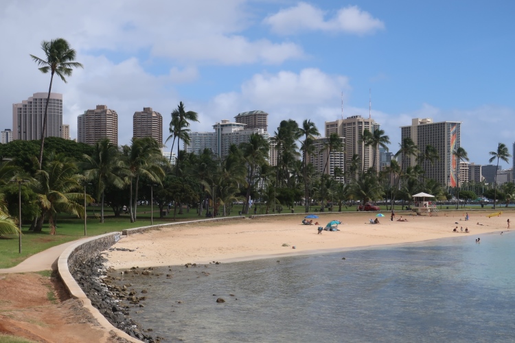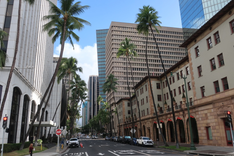 Wenn man nur in Waikiki abhängt, kann man leicht der Fehlvorstellung erliegen, hier sei auch das Zentrum der Stadt. Aber dem ist keineswegs so: Die Downtown liegt einige Kilometer westlich von Waikiki. Und sie ist das Ziel unseres ersten Streckenparts.