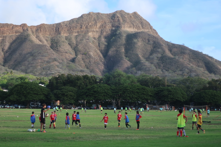 Ein weiterer interessanter Streckenabschnitt steht bevor. Denn quasi auf Tuchfühlung passieren wir jetzt eines der markantesten Wahrzeichen Honolulus: Den Diamond Head. Der bis zu 232 Meter hohe und 1,2 Kilometer im Durchmesser messende Tuffsteinkraterring entstand vor 300.000 Jahren durch Vulkanismus. Seien Namen verdankt der Diamond Head der Fehlvorstellung englischer Seeleute im 19. Jahrhundert, die im Gestein eingelagerten glitzernden Calcitkristalle seien Diamanten.