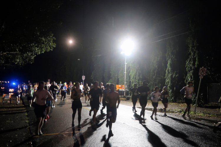 Früh startet der Lauftag. Sehr früh. Um 2:30 Uhr ist die Nacht am Sonntag für mich schon zu Ende. Wobei sie für mich eigentlich gar nicht so recht begonnen hat, da die bis tief in die Nacht reichende Partystimmung in meinem feieraffinen Hostel ohnehin einer schnellen Schlaffindung abträglich war. Aber das Adrenalin sorgt dafür, dass selbst um diese Zeit keine Müdigkeit in mir aufkommt. Und gewählt habe ich dieses Waikiki-Quartier auch nicht zufällig: Denn praktischerweise liegt es ganz in der Nähe des Marathonziels. Die Kehrseite: Von hier sind es einige Kilometer bis zum Startgelände. Dieses Problem löst aber ein Shuttlebus-Service, der die Läufer ab zwei Uhr morgens vom zielnahen Zoo zum Startareal chauffiert.