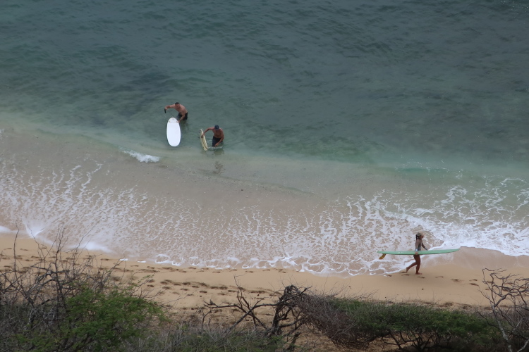 Nach 28 km endet die Schleife und ich erreiche wieder den schon bekannten Kalanianiole Highway. Vor mir, zu meiner Linken und unterhalb des Koko Craters liegen die Überreste eines weiteren Vulkans, der zur Meerseite hin durch Erosion ausgewaschen wurde und mit der Hanauma Bay einen der vor allem bei Schnorchlern beliebtesten und nur mit vorheriger Onlinereservierung besuchbaren Strände bietet. Für mich geht es hier aber nun nach rechts. Und damit darf auch ich - nun in der Gegenrichtung – den langen Rückweg nach Waikiki antreten.