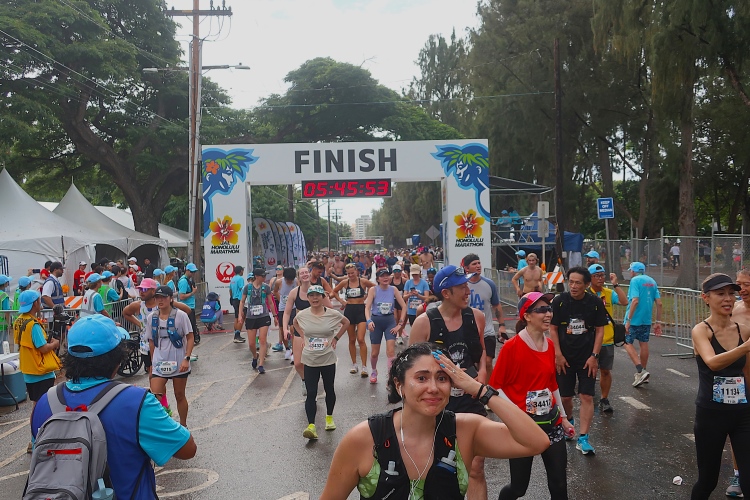 Nach 5:34 Stunden quere ich die Ziellinie. Noch nie in meinem Leben war ich bei einem Marathon so lange unterwegs und noch nie war mir das so egal. Dabei sein ist alles – das war hier mein einziges Motto, ganz dem Aloha Spirit folgend. Dass es dann noch besser als erwartet lief, beschert mir natürlich ein zusätzliches Glücksgefühl, weil es mir auch zeigt: Du hast es immer noch drauf, trotz minimalem Training und Alter. In der Ergebnisliste werde ich später unter den ersten 9.000 vom fast 23.000 Finishern gelistet sein. Das klingt für mich verdammt gut, auch wenn 5:34 Stunden alles andere als eine gute Marathonzeit sind.
