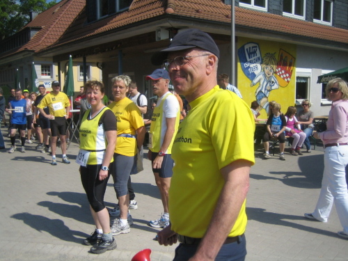 Und Stundenläufe sind alten- und behindertenfreundlich. Hier waren etliche Teilnehmer um die 70 Jahre, und, soweit ich erfahren habe, waren an Behinderungen neben Schäden am Rückgrat Blindheit, ein künstlicher Blasenausgang und eine Hüftgelenksprothese zugegen, mit der ungefähr die dreifache Marathondistanz bewältigt wurde.