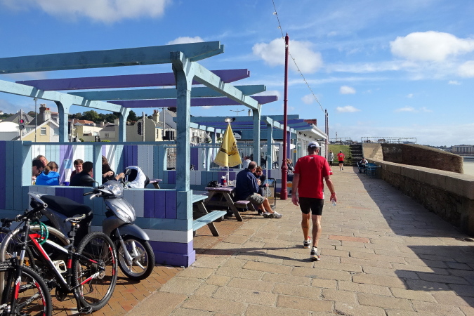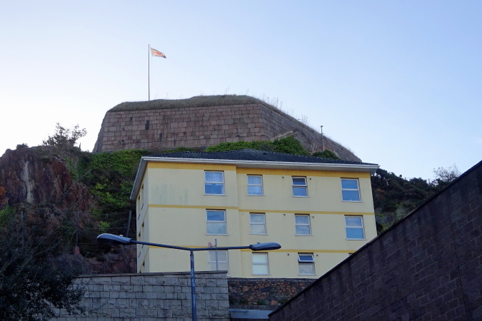 Auf das inkludierte Frühstück im Norfolk Hotel, das ab 7 Uhr 30 beginnt, verzichte ich zugunsten eines Essensvorrates, den ich mir noch am Abend im Supermarkt gekauft habe. Beim Verlassen des Hotels schaue ich kurz in den Speisesaal – das verbrannte Toastbrot, die in Zuckerwasser eingelegten Pfirsichstücke aus der Dose und der schwarze Espresso hätten mich nicht gestärkt, sondern mir womöglich den Magen verdorben. Aber Freude kommt trotzdem auf, denn das ach so grausliche Wetter von gestern hat sich völlig verändert: heute ist es nur leicht bewölkt, trocken, die Sonne kommt um 8 Uhr langsam durch. Jersey ist wie ganz Großbritannien bei der Uhrzeit ja eine Stunde hinter Mitteleuropa – man kann daher länger schlafen.