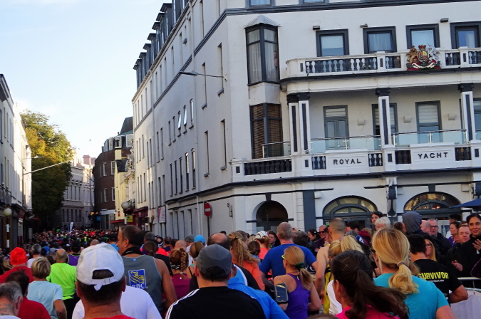 Die Anmeldung über die gut strukturierte und inhaltlich detaillierte Veranstalter-Website (nur in Englisch verfügbar) geht rasch vonstatten. Die Startgebühren beginnen bei £43 und enden bei £68 für die Nachmeldung. Da ich mich erst Ende September für einen Start auf der größten und mit ca. 100.000 Einwohnern zugleich bevölkerungsreichsten Kanalinsel, die im Ärmelkanal zwischen England und Frankreich liegt, entschlossen habe, zahle ich umgerechnet an die 75 Euro. Während ein Funktionsshirt im Startgeld inkludiert ist, ist ein Bon für die Pastaparty gegen einen Aufpreis von £12 extra zu kaufen.