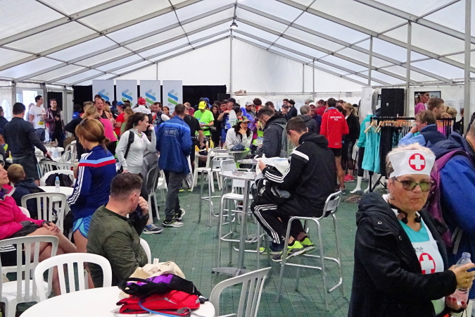Gestern waren bei der Startnummernausgabe nur drei Personen im Zelt, heute herrscht 40 Minuten vor dem Start reger Betrieb. Ich sehe die Finnen Jorma, Esa (mit über 500 Marathons im Ranking in Finnland weit vorne), Mauri und Reino – alles erfahrene Marathonis mit beeindruckendem Background und viel läuferischer Power. Der ebenfalls angekündigte gebürtige Tscheche und in England lebende Dan Miccola, der voriges Jahr in über 50 verschiedenen Ländern einen Marathon bestritt, scheint (noch) nicht da zu sein.
