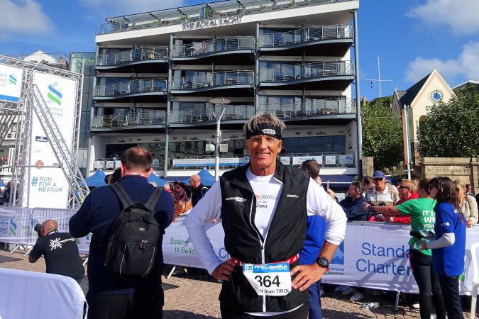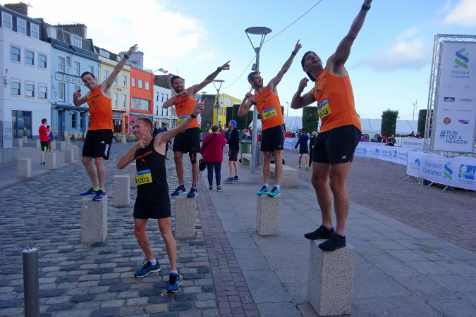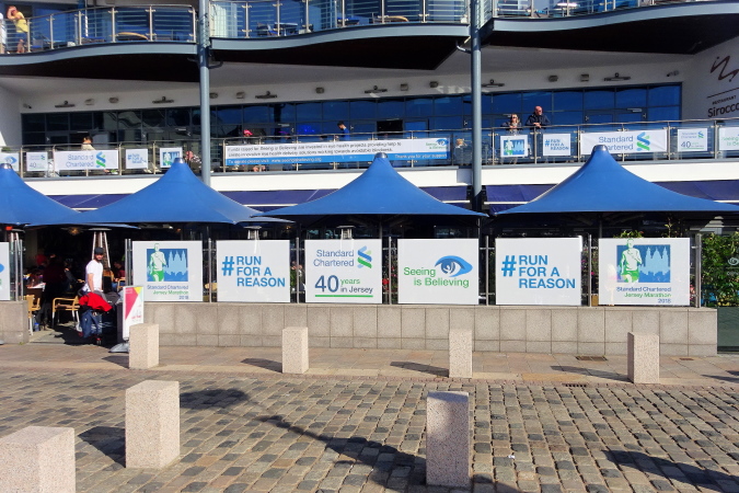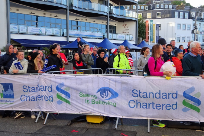 Die Werbetafeln des Hauptsponsors des Jersey Marathons, nämlich die Standard Chartered Bank, die seit 40 Jahren auf der Insel angesiedelt ist, vermitteln eine philosophische message: „Seeing is Believing“ und „Run for a Reason“. Welchen Grund habe ich eigentlich, in Jersey meinen 37. Marathon in diesem Jahr (insgesamt sind es nun schon über 380 mit einigen Ultras) zu bestreiten? Eine plausible ad-hoc-Antwort zu geben, fällt mir etwas schwer. Aber es hat mit Leidenschaft, Freude am Gelingen und Sammeln zu tun. Ich laufe nicht für kranke oder verstorbene Angehörige, ich laufe für mich selbst.