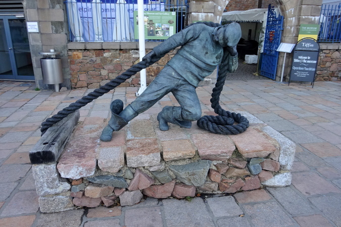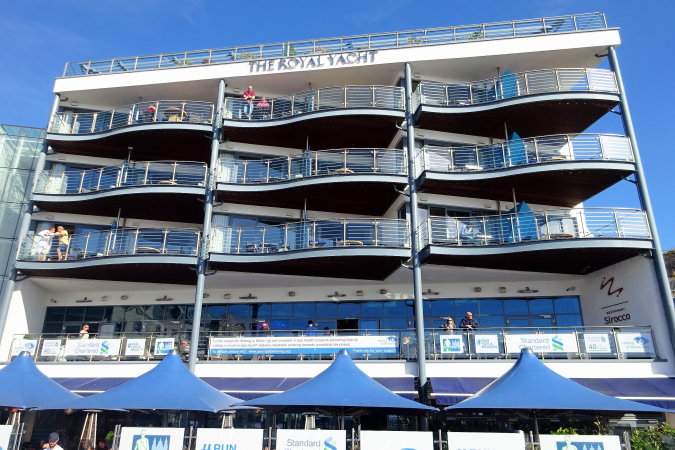 Dann schwärme ich aus, um die Stimmung rund um den Weighbridge Place vor dem Start bildlich einzufangen. Das Fort Regent, eine Festung aus dem 19. Jahrhundert und ein Erholungszentrum auf dem Mont de la Ville, ist gut zu erkennen. Im St. Helier Harbour habe ich schon gestern Abend die in der Marina vor Anker liegenden kleineren und größeren Jachten geknipst. Übrigens wurde Jersey im Zweiten Weltkrieg ab 1940 als Teil des Atlantikwalls von der deutschen Wehrmacht besetzt. In dieser Zeit wurden Festungsbauten an der Küstenlinie installiert. Durch Zwangsarbeiter wurden die Jersey War Tunnels errichtet. Das Denkmal am Liberation Square erinnert an die Befreiung von der deutschen Besatzung.