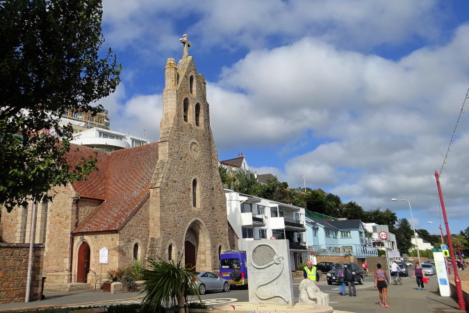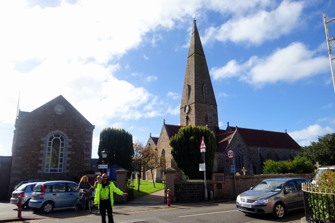 Wir bewegen uns weiter nach Nordwesten der Insel, erreichen nach sechs Meilen (fast 10 km) St. John, eine weitere von 12 Gemeinden von Jersey. Inzwischen brausen die ersten Staffelläufer, gut an ihren gelben, vorne und hinten befestigten Startnummern erkennbar, heran und überholen uns. Bei der Ecola Bethlehem neben der anglikanischen Kirche in der Gemeinde St. Mary steht eine Gruppe von Menschen, die ein spirituelles Lied singt – die Tafel mit einem Bibelzitat aus den Hebräerbriefen „Let us run the race with endurance“ soll die Läufer ermuntern und ihnen neue Kraft geben.