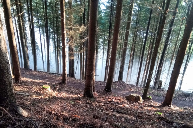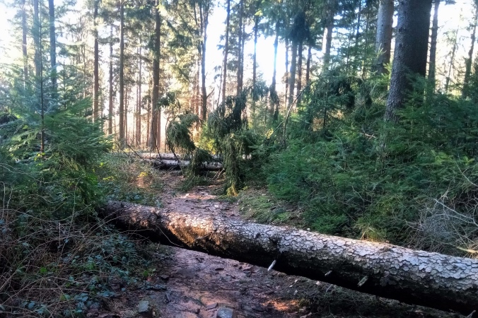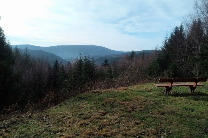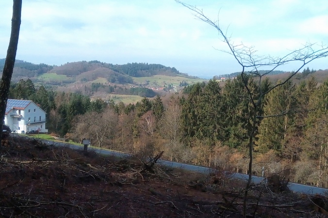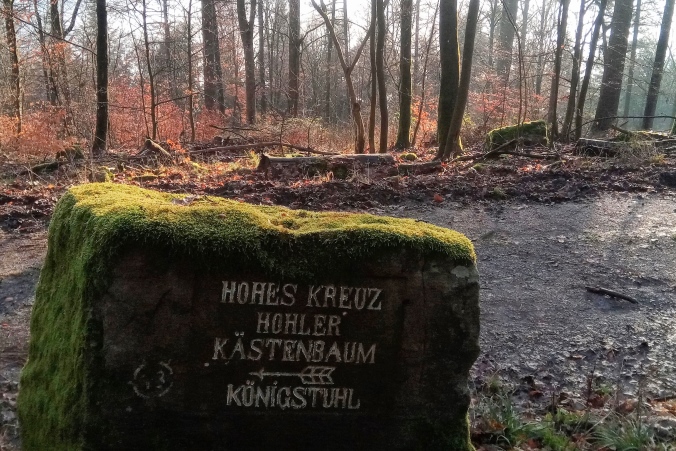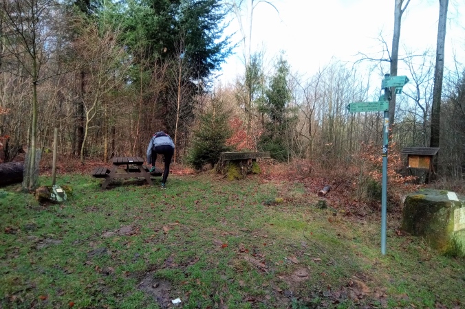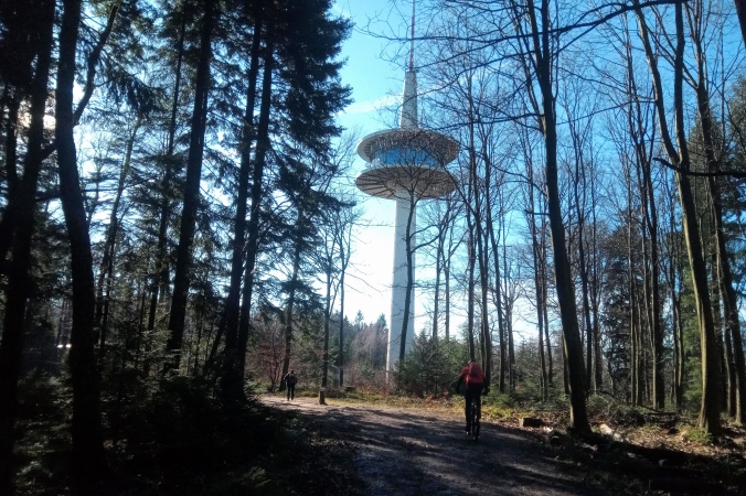 Und dann kommts. Hinter einer Teichanlage müssen wir links einen Weg hoch. Und hoch und höher und das 7 km lang. Sowas liebe ich ja. Auch hier ist Sabine schuld. Naja, ganz oben wird’s ein Stück flacher und du kannst befreit auf den Langen Kirschbaum zu traben, als ob gar nichts wär. Da haben sich nun die Schönwetterliebhaber versammelt, der Parkplatz ist voll und große Augen starren mich an. Was da wieder für ein Schrat aus dem Wald hervorbricht…
