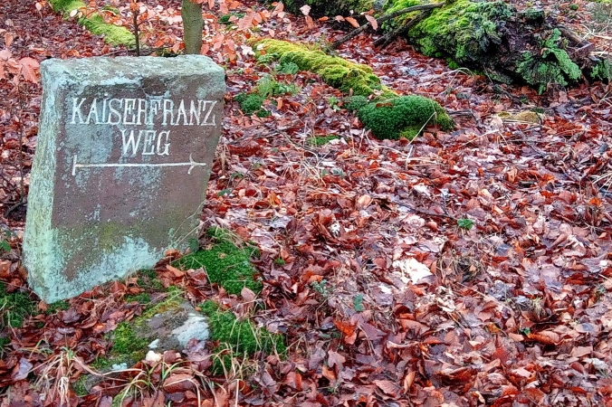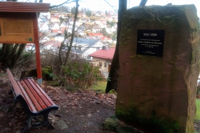 Langer Kirschbaum heißt dieser. Und da findest du die Erdbeeren! Und noch viel mehr, lecker vom Bäcker, Iso und Cola. Stärkung tut not, denn es folgt eine versorgungsfreie 16 km-Runde um Wilhelmsfeld. Klasse die Trails, Gedenkstein für Sissi, nette Ausblicke hin und her. Mein Tip: kurzer Abstecher zur Tanke mitten im Dorf – die hat einen gut ausgestatteten Kühlschrank voller isotonischer Flüssigkeiten. Sehr lohnend! Ziemlich wellig geht’s so rund ums Dorf, mit Abstand zu den Häusern. Die siehst du nur am Anfang. Sonst bist du schön im Wald. Ein paar größere Straßen musst du queren, im Ort und später auch noch mal.