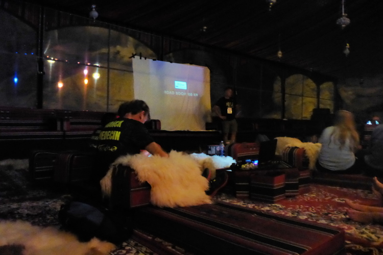 Auf einer Leinwand laufen die Bilder der letzten Tage und ein Film, der mit einer Drohne aufgenommen wurde, erinnert uns an die schönsten Stellen unseres Lauf-Abenteuers. Dann werden alle Läuferinnen und Läufer der einzelnen Rennen der Platzierung nach aufgerufen. Es gibt eine schöne Medaille und eine Mütze für alle, die teilgenommen haben. Die Erstplatzierten bekommen Sachpreise. Danach wird getanzt und bei der Happy-Hour sind auch die Bierpreise wieder erträglich.