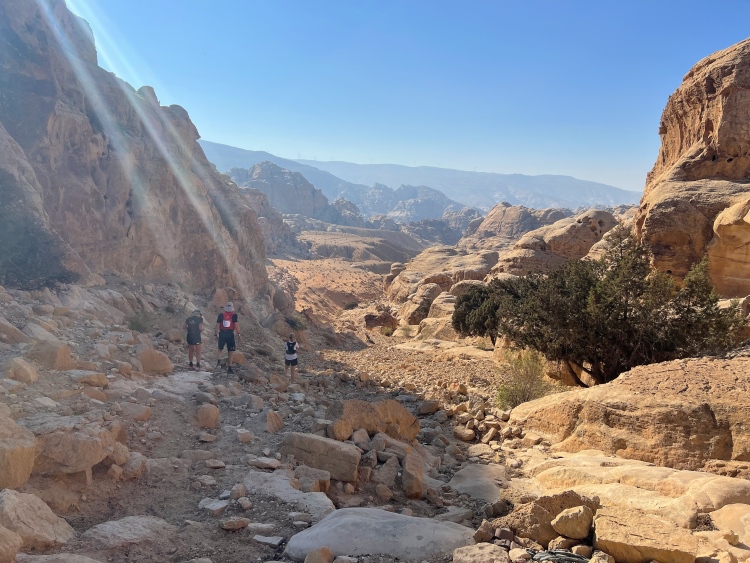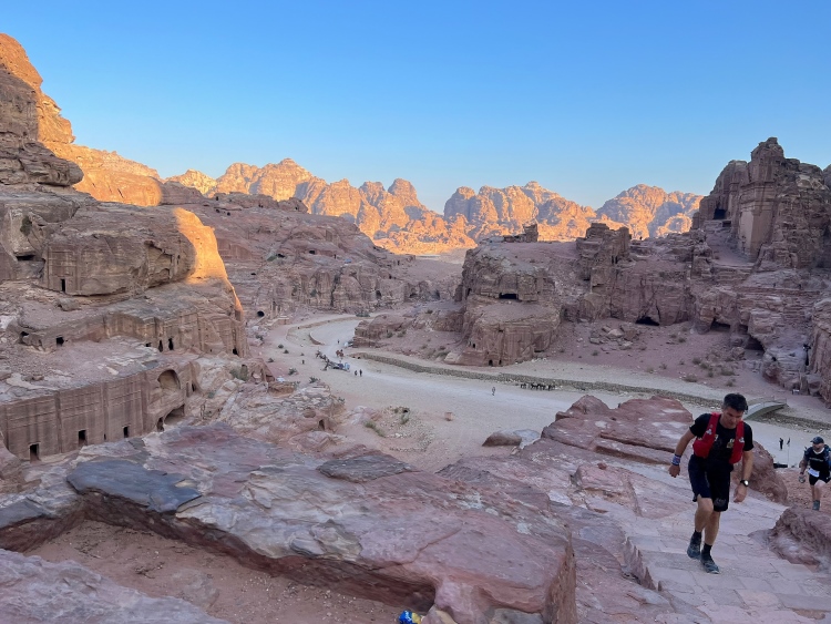 Erst mit dem Laufen und im Speziellen mit dem Ultra Trail Laufen wurde sie wieder wachgeküsst. Vielleicht habe ich auch mit dem Traillaufen begonnen, weil das am ehesten mit den Naturerlebnissen in der Sahara vergleichbar war. Wer weiß. Jedenfalls stieß ich auf eine Anzeige eines italienischen Anbieters, der einen dreihundert Kilometer Nonstop-Lauf auf den Spuren von Lawrence von Arabien durch Jordanien anbot. Vom Toten Meer nach Aqaba. Genial! Aber leider war mein Trainingsstand für ein solch hartes Rennen nicht ausreichend. So blieb auch dieses Unterfangen nur ein schöner Wunsch. Einen guten Ersatz boten erstmal die fantastischen Läufe der Ahansal Brüder in Marokko. Beim UTMES und beim Trail Tafraout konnte ich wieder Wüstenluft schnuppern und ich brannte daraufhin lichterloh für Jordanien und ich entdeckte das Jordan Running Adventure Race, das ebenfalls auf den Spuren von Lawrence durch Jordanien führt. Start in Little Petra und Ziel im Wadi Rum. 185km Non Stop oder 100 Kilometer in drei Etappen. Perfekt, wäre da nicht Corona. Der Lauf wird zweimal verschoben und nun nach 35 Jahren Training ist es endlich so weit.