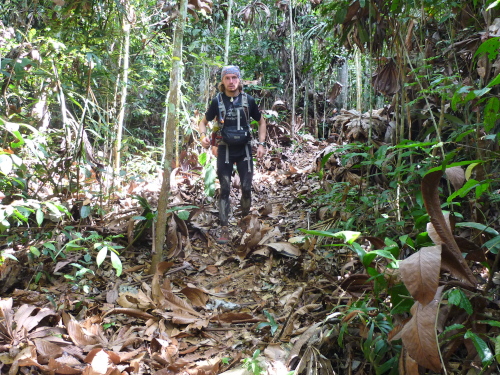 Augen, Nase und Ohren erleben hier einen Frontalangriff. Angenehmes Vogelgezwitscher, schrille Schreie und unheimliche Laute - die endlose Geräuschkulisse der Dschungelbewohner wirkt einerseits faszinierend auf mich, auf der anderen Seite dreht man fast durch. Immer wieder nehme ich auch links und rechts des Pfades ein Rascheln wahr. Neugierig drehe ich meinen Kopf Richtung Geräusch, in der Hoffnung ein seltenes Tier erblicken zu können. „Einen Jaguar nimmst Du zuerst durch die Nase wahr, bevor Du ihn siehst“, kommt mir die Botschaft vom Dschungelüberlebenstraining in den Sinn.