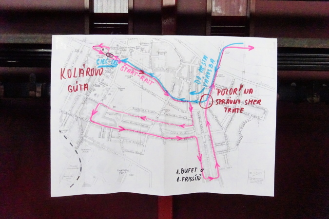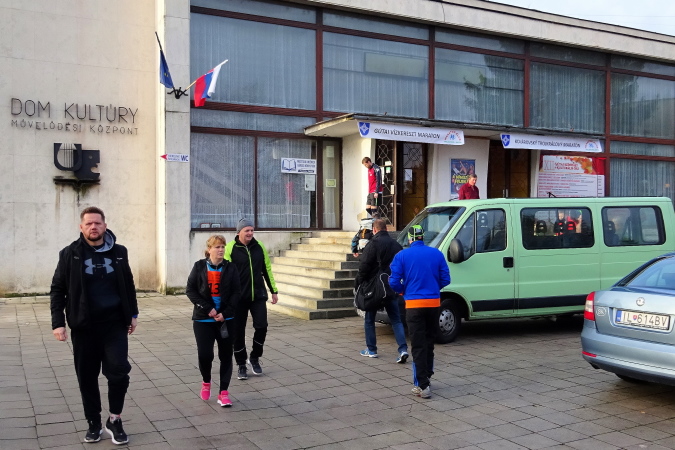 Und alle sind wieder hier – Simon Alexander aus Žilina, slowakischer Rekordsammler mit über 950 Marathons – davon allerdings viele auf seiner Hausstrecke und im kleinsten Kreis durchgeführt,  der blinde Peter Lecký, der von seinem Laufpartner Tomáš Krč geführt wird, Vladimír Kovalčík aus Trenčín, Jahrgang 1951 und pfeilschnell, schließlich auch wieder Eva Seidlová, die heuer 70 wird und leichtfüßig Marathonzeiten sehr knapp um 4 h hinknallt. Man kennt mich mittlerweile auch in der slowakischen Läufercommunity – der heutige Marathon hier wird mein insgesamt 30. Lauf über die 42,195 km in der Slowakei werden. Bei einer sehr entgegenkommenden Öffnungszeit von 6 Stunden – ich denke an Bratislava, wo ich vor zwei Jahren herausgefischt wurde wegen geringfügiger Zeitüberschreitung nach 33 km – kann hier nichts schiefgehen.