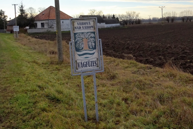 Wie schwierig war es hier im vorigen Jahr, der Wind war so stark, dass man kaum gehen konnte, geschweige denn laufen. Was das Wetter bei einem Marathon für eine Rolle spielt, werden heute wohl auch die Laufzeiten belegen. Bevor ich das Ortsgebiet von Vrbová nad Váhom sozusagen betrete, knipse ich die verwitterte Abbildung des Wappens, dessen Grün einen neuen Anstrich benötigen würde. An der Labe mische ich Tee, Cola und Wasser – ich habe es eilig, obwohl ich die 30 km-Marke mit 3:25 h erreicht habe.