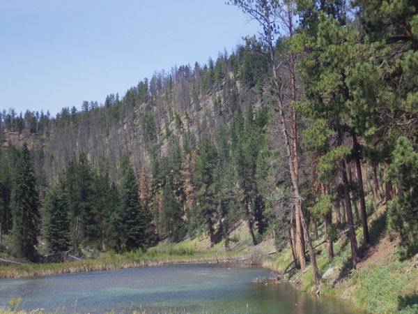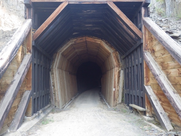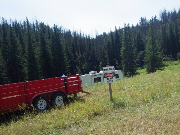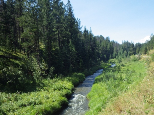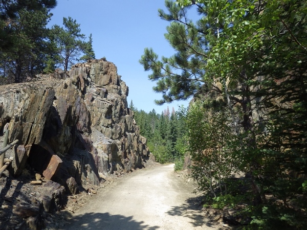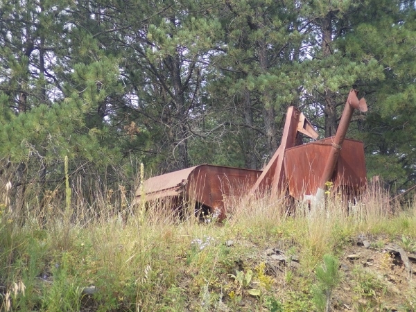 Kurz hinter Hill City kam die nächste Steigung auf 10 Meilen, gefolgt von 10 Meilen Gefälle. Der Trail schlängelt sich durch viele Täler mit toller Natur und immer wieder sahen wir Relikte aus der Goldgräberzeit: Alte Stolle, Fördergeräte, Pumpen und Goldgräberhütten. Aber auch noch aktive Minen und Claims waren zu sehen und interessantes über das harte Leben der Digger. Das Black Hill Gold hat übrigens einen einzigartigen grünlichen Schimmer und sieht sehr faszinierend aus.