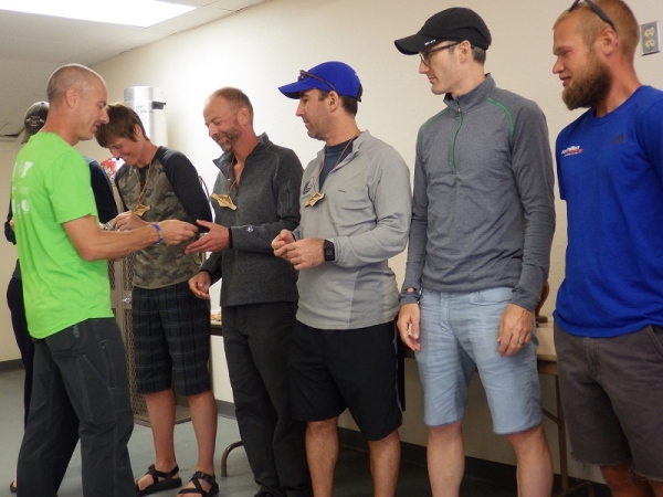 Dann fuhr ich kurz ins Hotel zum Duschen und war pünktlich zur Siegerehrung zurück. Dort erfuhr ich dann auch, dass nur 45 Läufer und Läuferinnen das Ziel erreicht hatten und ich 26ster in der Gesamtwertung war. Ich erhielt meine Gürtelschnalle, die wahre Medaille der 100 Meiler.