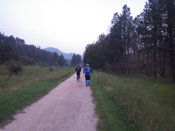 Aber jede Nacht geht zu Ende, so auch diese. In Hill City wurde es dann langsam hell und es waren auch nur noch 15 Meilen zurückzulegen, leider die nächsten 10 bergauf. Zum Glück war kurz vorher Jordan Schmidt aus Minneapolis zu mir gestoßen. Auch ihn kannte ich schon vom Lake Superior 50 Miles und wir verbrachten die nächsten 10 Meilen gemeinsam. Dann machte er bei Orville aber eine längere Pause und ich lief die letzten Meilen alleine. Ein letzter Blick auf das Crazy Horse Memorial in der Sonne, dann kam Custer auch schon näher. Ich lief nach 28 Stunden und 19 Minuten ins Ziel und war super stolz, meinen ersten US 100 Meiler geschafft zu haben.