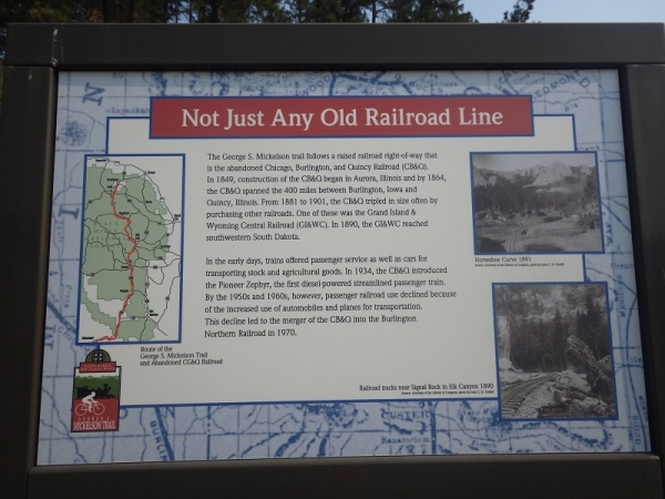 Nach und nach wurden diese Gebiete auch eisenbahntechnisch erschlossen, um Material und Menschen dort schneller hin zu bringen. So auch in den Black Hills, wo 1880 die Eisenbahnstrecke von Egmont und Hot Springs nach Deadwood im Norden der Black Hills erbaut wurde. Die Strecke hatte eine Länge von 139 Meilen. Nach der Blütezeit des Goldrausches verfiel die Strecke zusehends, wurde aber noch bis 1983 befahren.