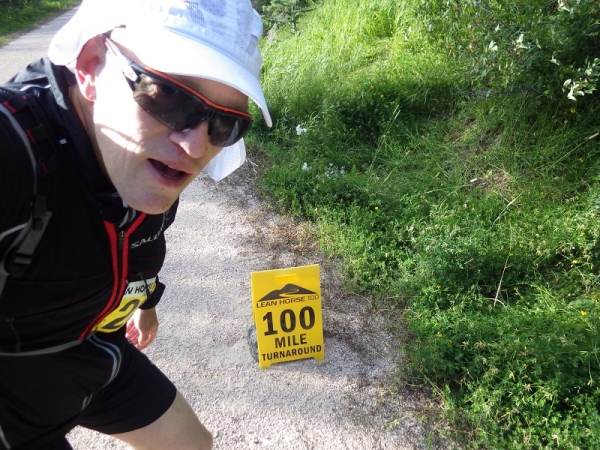 Dann kommt der Hammer, von Meile 30 bis zum Wendepunkt bei Meile 50 ging es kontinuierlich bergauf, also 32 km lang. Es waren zwar nur 500 HM zu überwinden, aber das zog sich echt, besonders bei diesem heftigen Gegenwind. Nach 49,3 Meilen war die Schutzhüte DMTM erreicht, die ich zügig passierte, denn ich wollte erst zum Wendepunkt, der 0,7 Meilen weiter lag. Dort angekommen, schaute ich auf die Uhr: 11.55 std. Super, dachte ich. Vor allem bei diesen Bedingungen.