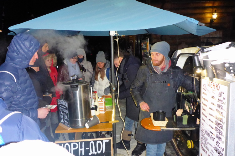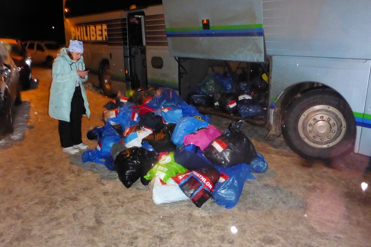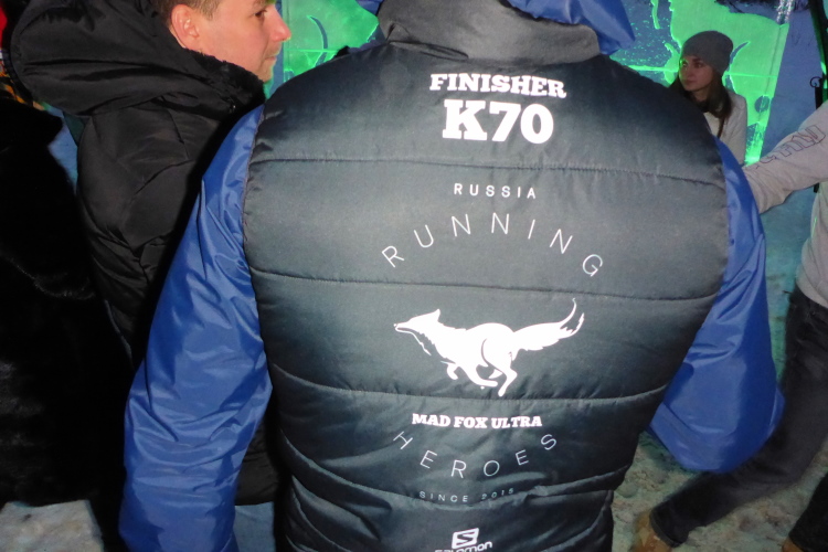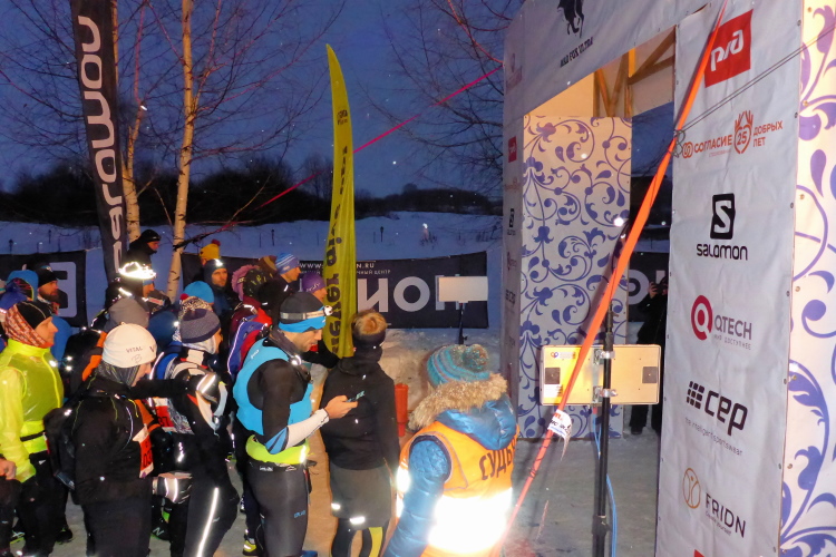 Startnummernausgabe, Start und Ziel sind in einer Ferienanlage 10 Kilometer westlich von Rostow. Aus dem Taxi erkennen wir unglaublich viele Autos, die auf der Autobahn geparkt sind. Alle Laufstrecken sind ausgebucht. Im kleinen Saal, wo die Startnummernausgabe ist, fühlen wir uns nicht wohl. Direkt von der Wolga kommt Olga, die mir erklärt, dass ich in den drop bag bei km 40 trockene Unterwäsche lagern solle. Das macht für mich keinen Sinn, denn diese Hochleistungswäsche bekomme ich nicht ohne Hilfe ausgezogen, und auf dem Eis rumhüpfen möchte ich auch nicht. Dann will sie meinen Ausweis sehen, der liegt im Hotel. Problem! Ab zur Chefin. Die sagt, ich solle mir vom Hotel eine Kopie auf´s Handy schicken lassen. Wie denn ohne Netz? Ich habe ein Foto meines Passes auf dem Handy und sogleich eine geile Finisherweste in der Hand.