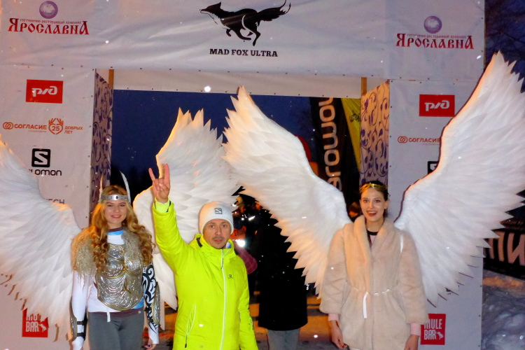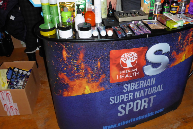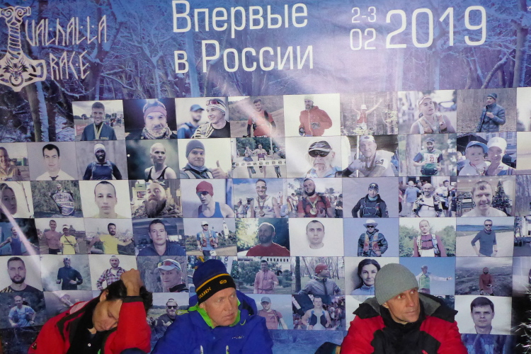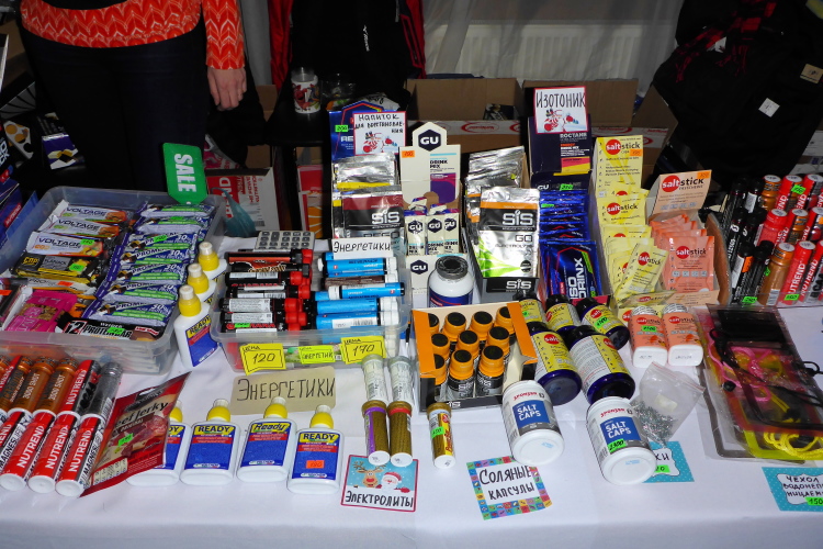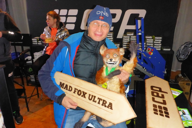 Russische Innenräume sind grundsätzlich überheizt, und jetzt in dem Gewusel gehen Trailläufernerven auf Grundeis. Gerno hat CEP heiß gemacht. CEP ist einer der Hauptsponsoren beim Mad Fox Ultra, sie ist Tochterfirma von medi aus Bayreuth und hat uns deutschen Pioniere klamottenmäßig ausgestattet. Foto vor dem Messestand von CEP, danach wir panikmäßig raus aus der Bude. Wir verzichten auf das englische briefing. Seit 16 Uhr sind 97 Läufer auf den 100 Meilen unterwegs, fünf davon werden finishen.