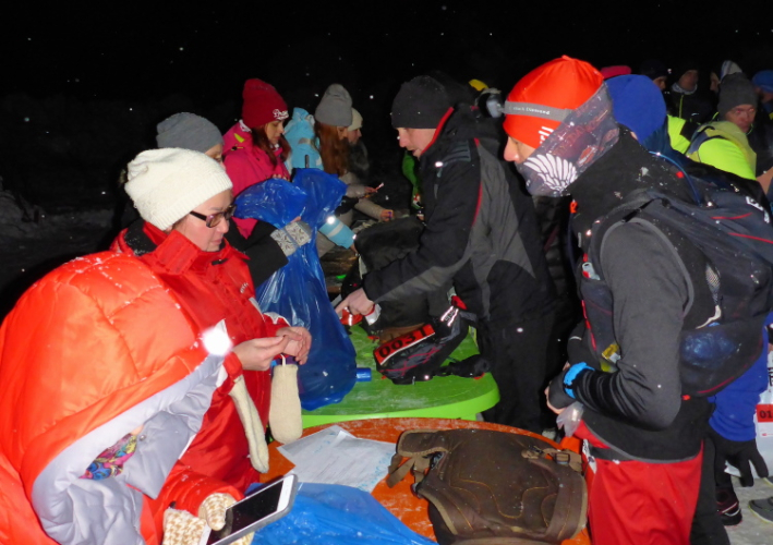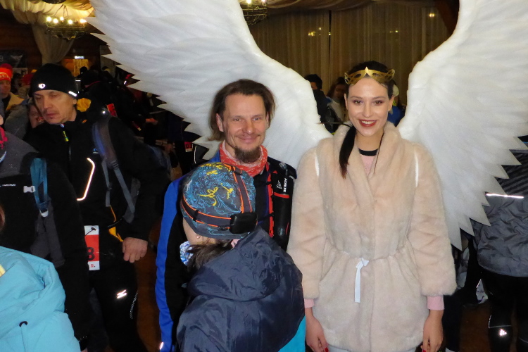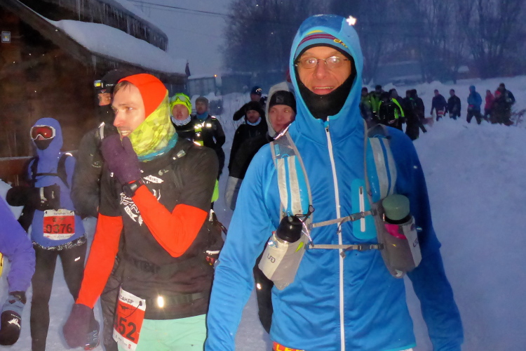 Beim Frühstück um 6:30 Uhr nur schlanke Läuferinnen. Gut, die laufen nur die 30 km und starten später. Taxi zum Startort, dropbag fürs Ziel und für Kilometer 40 abgeben. Da niemand von den Helfern Englisch kann, entfällt für uns die Kontrolle der Pflichtausrüstung. Nur Mikhail Dolgoy, Chef von dem Unsinn hier, kann Englisch: „Please, please,please, never leave the path!“
