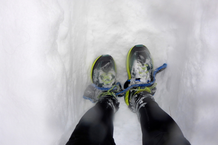 „Gamascha, Gamascha!“ ruft einer hinter mir, ich bücke mich, die Kolonne hinter mir rammt meinen Arsch. Ich an den Rand des Pfades, um die Gamaschen zu befestigen. Zack, ein Idiot rempelt mich an und ich lande kopfüber in den scharfen Eiskristallen, unten dringt Wasser in meine Schuhe. Helfende Hände. Ich versuche jetzt zu überholen, um wieder warm zu werden, versuche Geschwindigkeit zu halten. Aber jeder Versuch, den Pfad zu halten endet mit Schlamassel aus Schnee, Wasser, Erde, Lehm und Grasbollen. Gehe ich aus dem Weg, um andere vorbei zu lassen, haut man mich um.