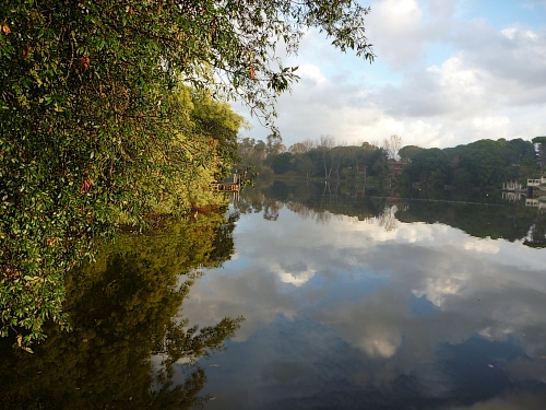 Die Sonne und die bunten Vögel wecken mich. Jenseits von Afrika. Blick über die Lagune, ich atme die pralle Luft ein. Ein Blick für Götter auf die Lagune, der pure Luxus.
