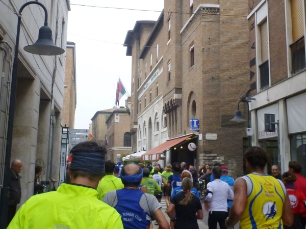 Der letzte Kilometer zieht sich. Wenigstens geht es jetzt direkt aufs Ziel zu. Die beiden ersten Runden führten ja noch in die Altstadt. Dumm, dass einige 30-km-Läufer dorthin geleitet wurden und damit vier Kilometer mehr absolvierten als beabsichtigt. Mannheim lässt grüßen. Wobei in Ravenna der Veranstalter dank Zeitmessmatten die Wertung korrigieren konnte.