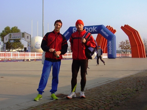 Schnell geht es über Bologna Centrale weiter nach Ravenna, wo wir pünktlich um 12.30 Uhr dem treno regionale entsteigen. Üppiger Sonnenschein begrüßt uns, auf der Anzeigetafel 17 Grad Celsius – perfetto. Nach einer kurzen Orientierung mit dem Stadtplan wird der Autobus Numero 1 schnell gefunden. 10 Busminuten später erreichen wir unser vorbestelltes B & B. Paola und Albano warten schon neugierig auf die beiden Austriaci. Großes Hallo, ich packe mein bestes Italienisch aus (glaube ich zumindest), Hündchen Jenny macht Radau ob der Ankömmlinge. Zimmerbezug und wir machen uns auf zur Startnummernausgabe. Ach ja, wir das sind: Johann, Jahrgang 1955, Ex-Spitzenfußballer und nun Langstreckenspezialist mit unbändigem Zug nach vorne, und ich, Manfred, Jahrgang 1962, der heuer sein 20-jähriges Laufjubiläum feierte.