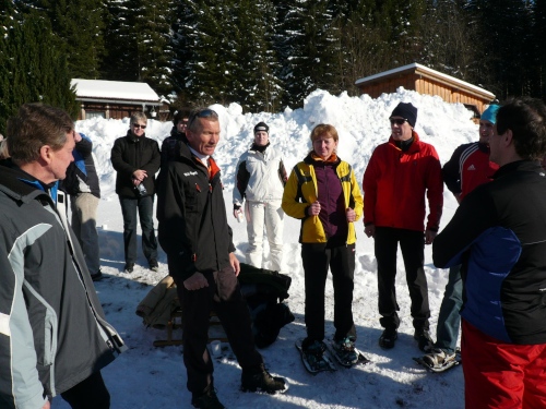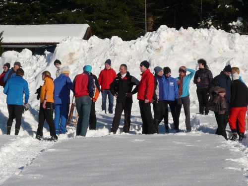 Zurück im Riesberghof, unserer Unterkunft, stehen dann am späten Nachmittag ein Schneeschuhtest und ein Staffelrennen mit Schneeschuhen und Schlitten auf dem Programm. Wie das genau aussieht, wird erst nach dem Genuss von Glühwein verraten. Ein Diesel muss ja auch vorgeglüht werden, bevor er rund läuft.