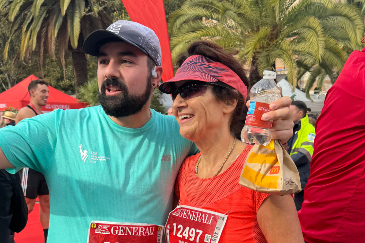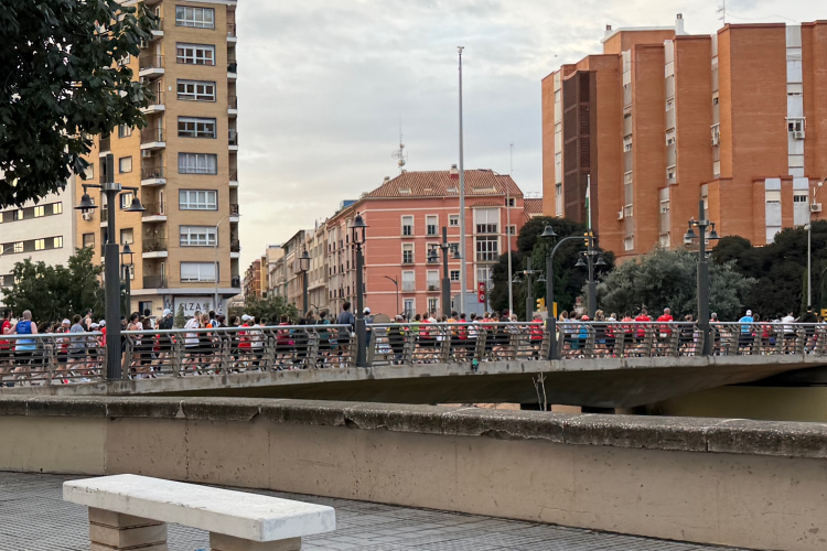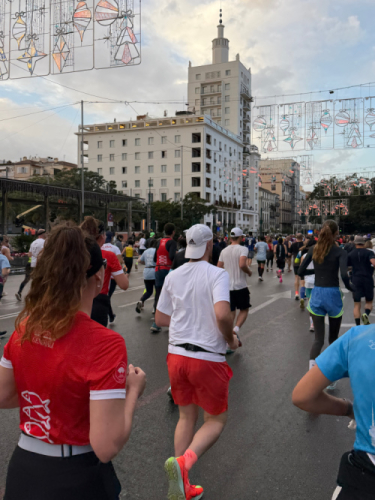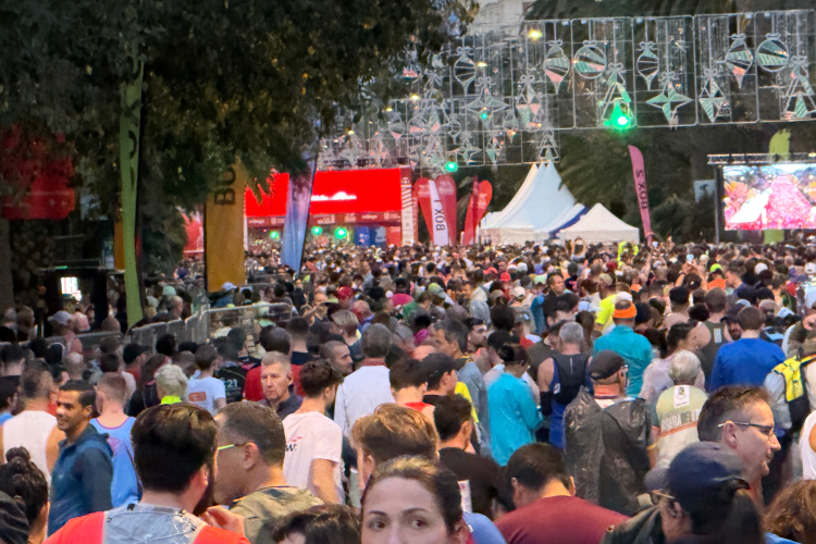 Wir sind diesmal doch Glückskinder: Der Wetterbericht ist inzwischen auf trockenes Wetter mit wenig Wind umgeschwenkt und am frühen Morgen hat es schon 14 Grad. Perfekt. In den Internetinformationen sind die Orte für Taschenabgaben und Toilettenhäuschen gut verzeichnet. Wie von Marathons in Spanien bekannt, kommen spanische Teilnehmende gerne auf den letzten Drücker. Also hört man aktuell nur viele internationale Sprachen.