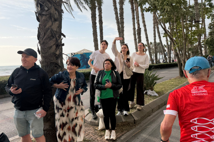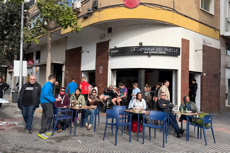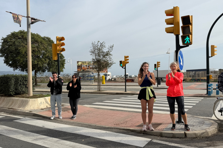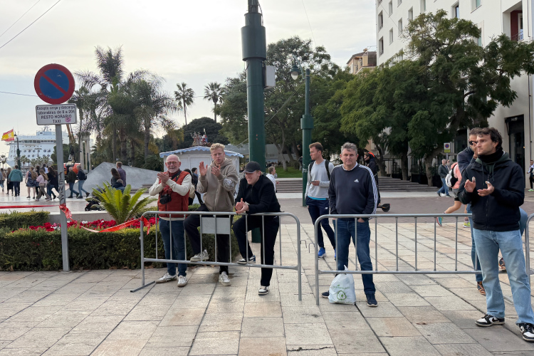 Zurück über die Calle Almería. Scheint die Hauptstraße im Zentrum von El Palo zu sein. Viele Cafés und Restaurants. Unzählige Einheimische, einige haben noch die Zeit, uns zu applaudieren. Rechts ein alter Straßenbahnwagen als Denkmal. Málaga hat inzwischen wieder zwei Straßenbahnlinien, die im Zentrum aber als U-Bahn verkehren.