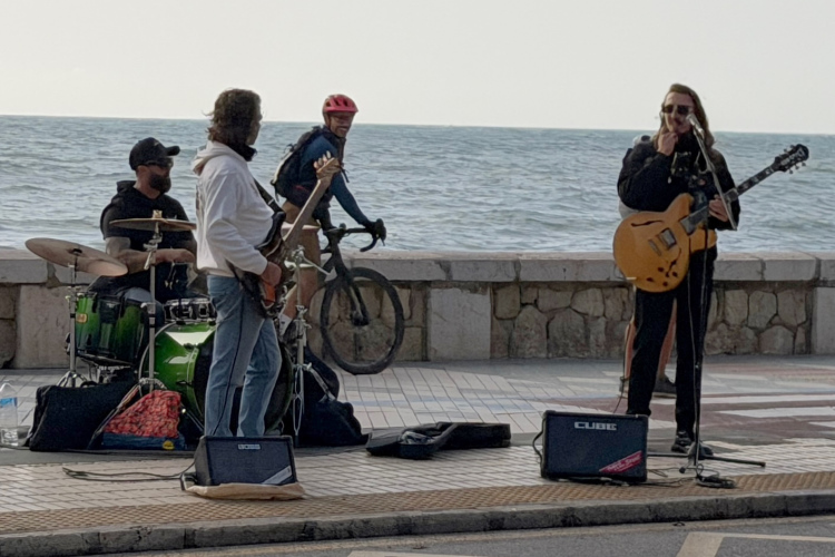 Musik begleitet uns auf dem Weg. Dann kommen kleine Gebäude zwischen uns und dem Meer. Und Eukalyptusbäume. Links an einer Halle steht: Málaga Ciudad del Paraíso - Stadt des Paradieses. Wir kommen nach El Palo. Hier stehen kleine einstöckige Häuser an der Straße. Mein Tipp: ein Spaziergang auf der Uferpromenade mit seinen vielen kleinen Cafés und Chiringuitos, wo man gegrillte Sardinen bekommt. Sehr romantisch.