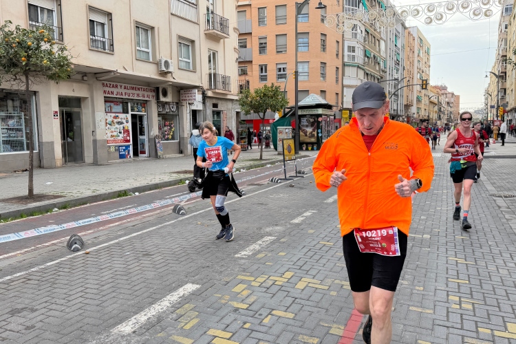 Die Strecke wurde diesmal geändert. Im informativen Begleitheft steht: „Eine flachere Strecke ohne Schleifen, die das Tempo der Läufer begünstigt und gleichzeitig durch einige der schönsten und symbolträchtigsten Ecken Málagas führt.“ Ich kenne die Streckenvarianten bei meiner fünften Teilnahme recht gut und bin etwas enttäuscht, dass einige nette Vorstadtviertel wegfallen. Aber um meine Eindrücke gleich vorwegzunehmen: Die neue Strecke ist wirklich flacher und im letzten Viertel wesentlich angenehmer zu laufen. Die sehr lange Schleife durch die Altstadt war stimmungsmäßig ein Hit. Aber ab Kilometer 40 dann doch etwas zu spät.