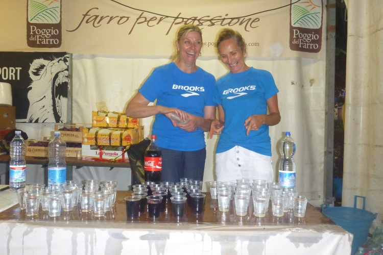 Hungrig sind wir auch und verdrücken ein Farro-Gericht, gesponsert vom lokalen Bio-Produzenten. „Farro“ (auf Deutsch „Emmer“) bezeichnet eine der ältesten kultivierten Getreidearten, die derzeit eine Renaissance erlebt und wegen ihres hohen Eiweiß- und Mineralstoffgehalts besonders gesund sein soll. Farro-Produkte von Spaghetti bis zu Frühstücksflocken enthält auch die Startertüte. Zusätzlich gibt es Wasser und ein schönes Laufhemd. Jetzt würde ich gern eine Cola trinken, was aber vor einem Marathon nicht sinnvoll ist.