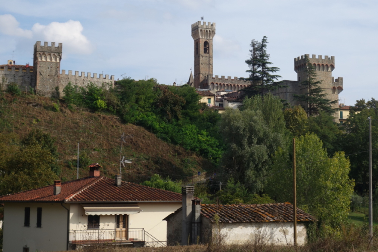 In San Piero ist gerade Markt an der Straße. Kurz drauf biegen wir scharf rechts ab und nehmen eine Steigung in Angriff. An der Villa Adami im historischen Zentrum von San Piero ist Schluß mit Steigen und es geht abwärts. Die Villa Adami ist übrigens eine der zahlreichen Medicibauten im Mugello. In Scarperia werden wir noch mehr davon zu sehen bekommen.