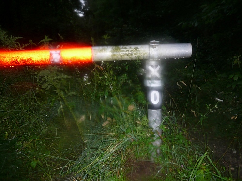 Nach einer Stunde erkenne ich im Regennebel die erste Markierung. Da ich diese gleich als Null identifizieren kann, befinde ich mich plötzlich vor einem Läuferfeld, ja, davor! Merke: Traillaufen hat mit Intelligenz und nichts mit Schwarmverhalten zu tun. Der bessere Teil der Null ist ein wachsames Auge.