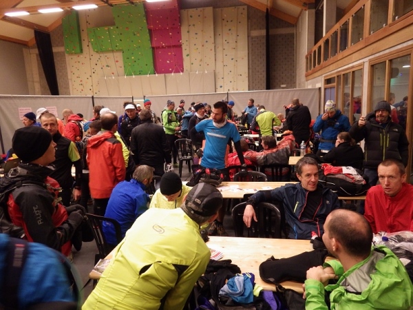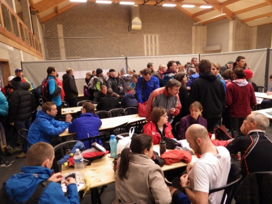 Die 400 Läuferinnen und Läufer bringen die kleine Halle fast zum Bersten. Das große Interesse ist ein deutlicher Hinweis darauf, dass es sich hier um einen echten Klassiker handelt. Werbung macht man keine. Trotzdem und ungeachtet des Mistwetters ist diese Horde wildentschlossener Trailer in dieses verschlafene Nest gereist. Sie wollen nur eines: Spaß beim Laufen.