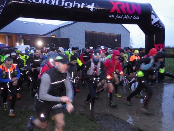 Schon beim Eintreffen in Olne um 7 Uhr morgens stellt man fest, dass der Hinweis auf ein wesentliches Trailrunner-Utensil für manchen Teilnehmer nicht schlecht gewesen wäre. Es ist natürlich noch dunkel und Straßenlaternen gibt es hier nicht. Zum Glück habe ich, wie viele andere, meine Stirnlampe eingepackt. Die ist hier „lebenswichtig“. Doch dazu später.