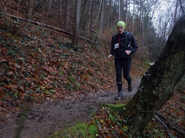 Die Startgebühren sind übrigens mit 15 Euro extrem niedrig. Es gibt daher auch keine Medaille, keine Urkunde und kein Tshirt, dafür aber Trailrunning pur. Die Anmeldung geht problemlos und dann beginnt das Warten auf den Start. Aufgrund des schlechten Wetters verzögert sich dieser um 15 Minuten, aber um 8.15 Uhr geht es los.